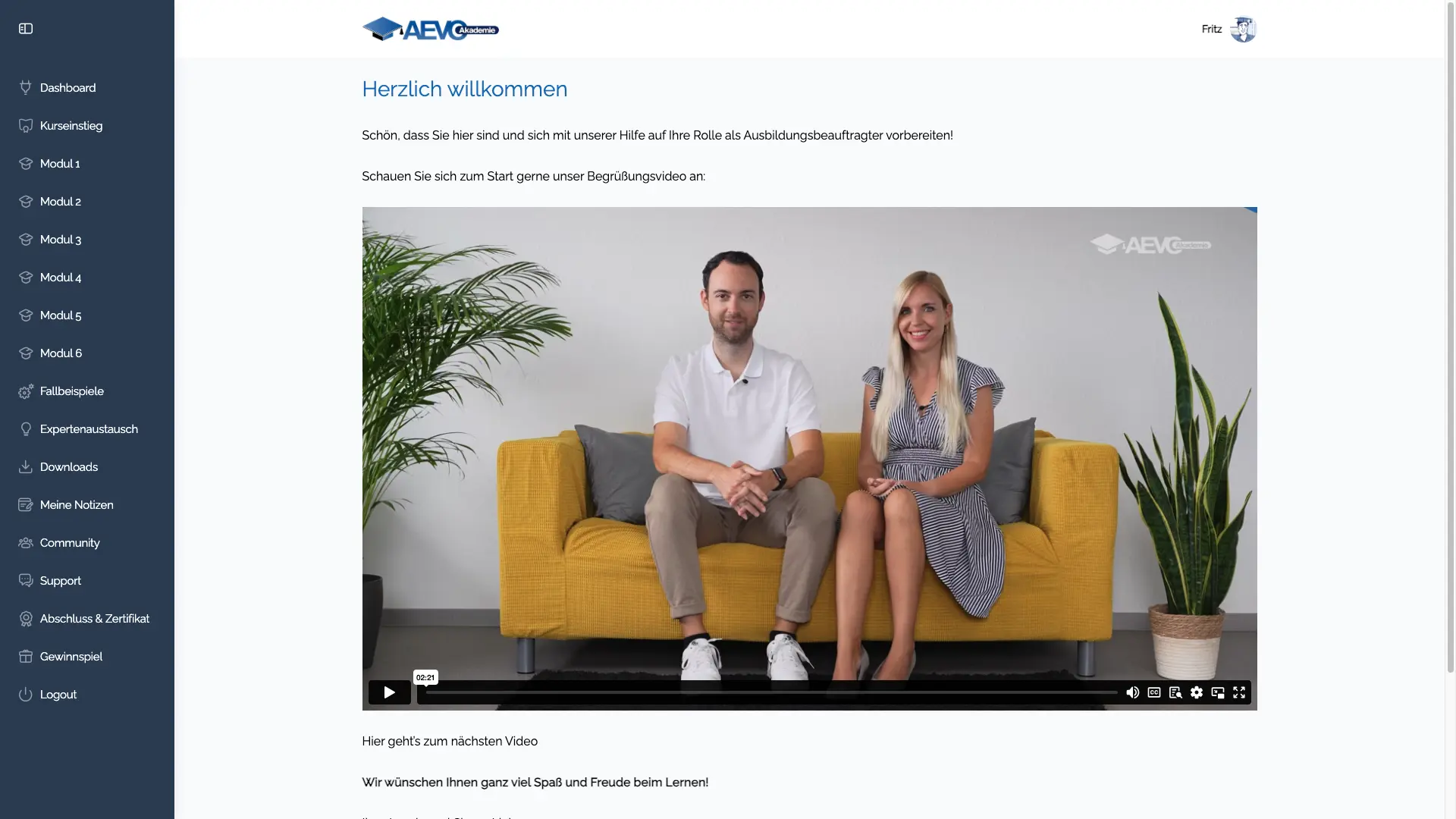 Das folgende Video gibt Ihnen einen Einblick in unseren Kurs für Ausbildungsbeauftragte und stellt die Benutzeroberfläche sowie die einzelnen Funktionen vor.